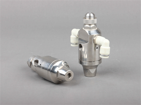 1/8DJ霧化噴嘴是一個緊湊型自動霧化噴嘴,具有單氣體管路型的運行特點,是為了小區(qū)域使用而專門設(shè)計的。氣體和液體入口是1/8英寸NPT或BSPT(內(nèi))管螺紋連接。
