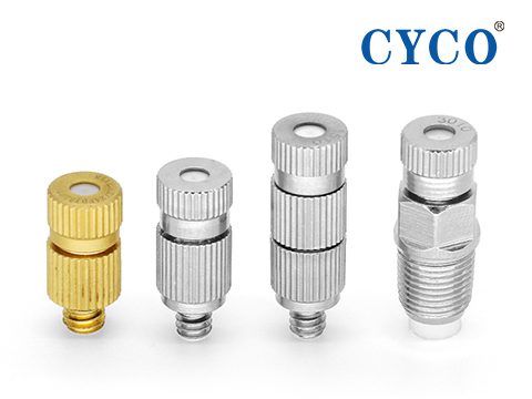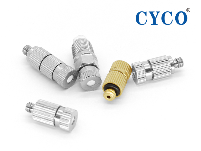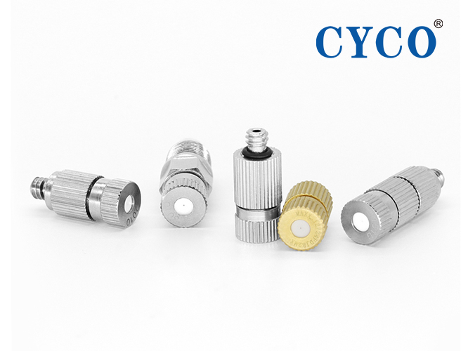 3、此種噴嘴噴孔是使用美國(guó)精密打孔機(jī)打孔,孔徑在0.1mm-0.5mm之間,制作精良,使用成本與氣加濕相比,節(jié)省10倍以上